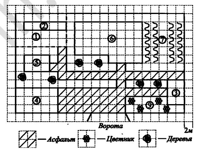 На плане (см. рис. выше) изображён загородный участок. Сторона каждой клетки на плане равна 2 м.