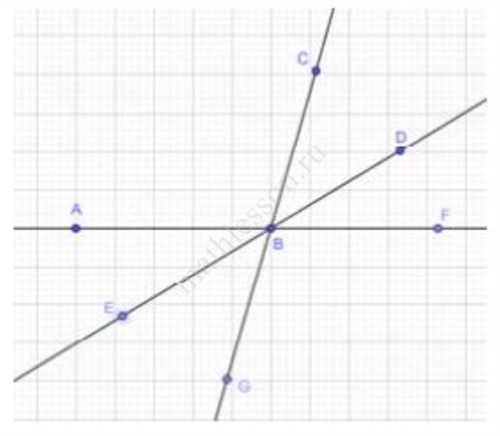 - При пересечении двух параллельных прямых третьей прямой сумма накрест лежащих углов равна $$180^{\circ}$$.