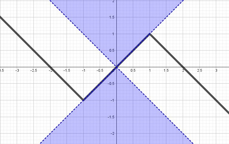 $$y=|x+1|-|x-1|-x$$