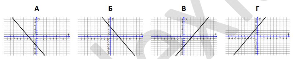 Ниже представлены графики функций $$y = f(x)$$. Установите соответствие между графиками функций и формулами, которые их задают. В ответе укажите последовательность цифр, соответствующих А, Б, В, Г, без пробелов, запятых и других разделительных символов.
