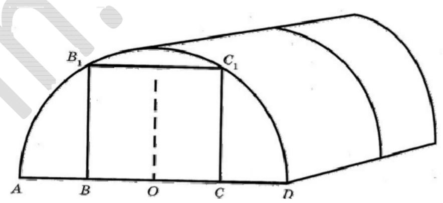 Сергей Петрович решил построить на дачном участке теплицу длиной 7 м. Для этого он сделал прямоугольный фундамент. Для каркаса теплицы Сергей Петрович заказал металлические дуги в форме полуокружностей длиной 8 м каждая и покрытие для обтяжки.
