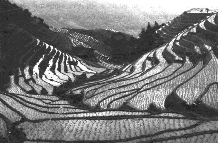 В горных районах, особенно в южных широтах с влажным климатом, земледельцы на склонах гор устраивают террасы (см. рис. выше). Земледельческие террасы - это горизонтальные площадки, напоминающие ступени. Во время дождя вода стекает с верхних террас вниз по специальным каналам. Поэтому почва на террасах не размывается и урожай не страдает. Медленный сток воды с вершины склона вниз с террасы на террасу позволяет выращивать даже влаголюбивые культуры. В Юго-Восточной Азии террасное земледелие широко применяется для производства риса, а в Средиземноморье - для выращивания винограда и оливковых деревьев. Возделывание культур на террасах повышает урожайность, но требует тяжёлого ручного труда.