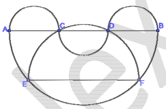 Дан полукруг диаметром $$AB$$ и три равных друг другу полукруга диаметрами $$AC$$, $$CD$$ и $$DB$$ (см. рис.). На полуокружности диаметром $$AB$$ взяты точки $$E$$ и $$F$$ так, что полуокружность диаметром $$EF$$ проходит через точки $$C$$ и $$D$$. Найдите площадь полукруга диаметром $$EF$$, если $$AC = \frac{4}{\sqrt{\pi}}$$.