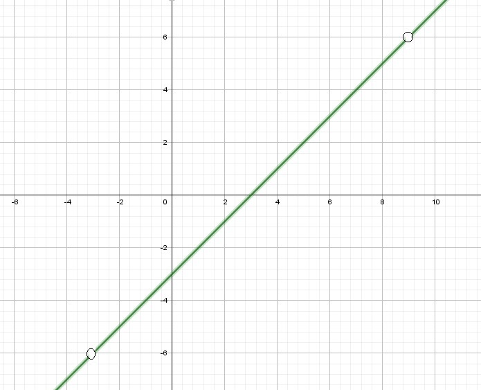 Упростим функцию: $$y=\frac{(x-9)(x-3)(x+3)}{(x+3)(x-9)}=x-3$$