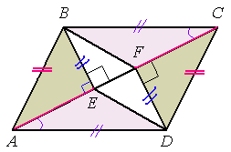В параллелограмме $$ABCD$$, проведены перпендикуляры $$BE$$ и $$DF$$ к диагонали $$AC$$. Докажите, что $$BFDE$$ — параллелограмм.