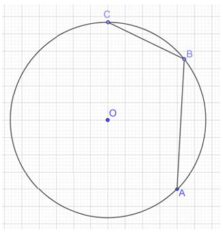 Согласно рисунку градусная мера центрального угла АОС равна $$45°+90° = 135°$$. Следовательно, дуга, на которую опирается вписанный в окружность угол АВС имеет градусную меру: