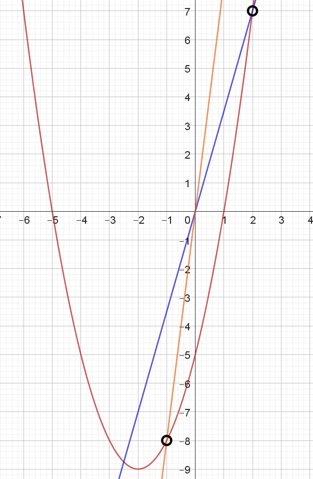 Постройте график функции $$y = \frac{(x^2 + 3x - 10)(x^2 - 1)}{x^2 - x - 2}$$. Определите, при каких значениях $$a$$ прямая $$y = ax$$ имеет с графиком ровно одну общую точку.