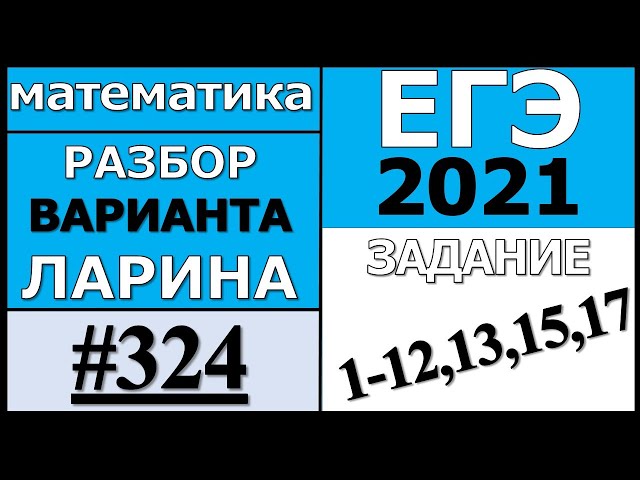 Решаем ЕГЭ 324 вариант Ларина ЕГЭ 2021 по математике. Подробное решение 1,2,3,4,5,6,7,8,9,10,11,12, 13,14,15,16,17,18,19 заданий тренировочного варианта ЕГЭ Ларина №324 (alexlarin.com)