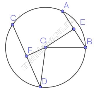 Проведём из центра окружности $$O$$ перпендикуляры к хордам:
