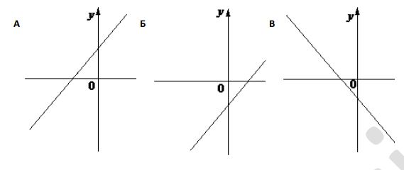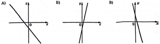 k>0-возрастает ,k<0-убывает,b>0- Oy пересекает над Ox, b<0-под Ox,тогда А2 Б3 В1.