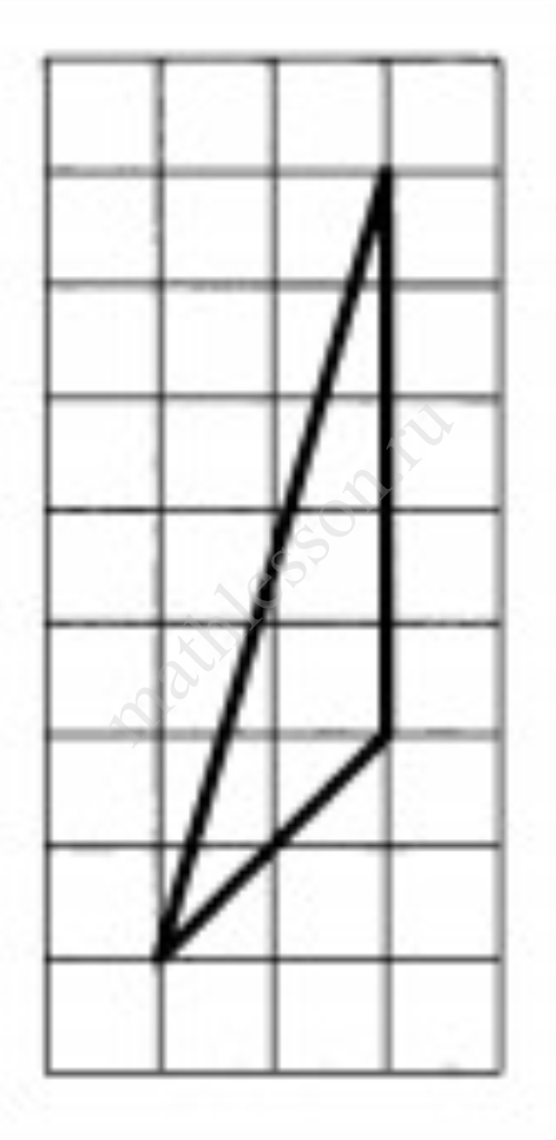 Площадь треугольника можно вычислить по формуле $$S=\frac{1}{2}ah$$, где $$a$$ - длина основания; $$h$$ - высота треугольника. Из рисунка видно, что $$a=3$$ , а $$h=4$$, следовательно, площадь равна $$S=\frac{1}{2}\cdot 3\cdot 4=6$$.