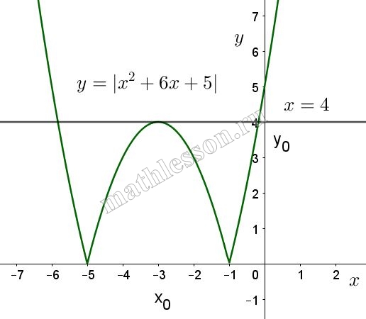 Постройте график функции $$y = |x^2 + 6x + 5|$$ и определите, при каких значениях $$a$$ прямая $$y = a$$ имеет с графиком три общие точки.