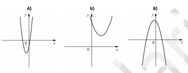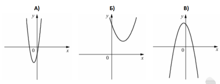 Установите соответствие между графиками функций вида $$y = ax^2 + bx + c$$ и значениями коэффициентов $$a$$ и $$b$$. В ответе запишите три цифры, соответствующие буквам А, Б, В, без пробелов и других дополнительных символов.