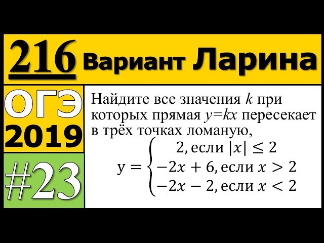Найдите все значения $$k$$, при которых прямая $$y = kx$$ пересекает в трёх точках ломаную, заданную условиями: $$y = \left\{\begin{aligned} 2,& |x| \le 2 \\ -2x + 6,& x > 2 \\ -2x - 2,& x -2 \end{aligned}\right.$$