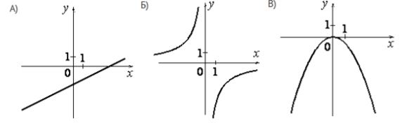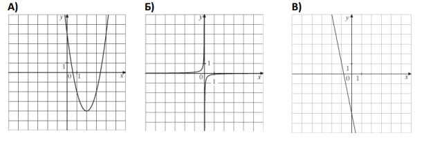 Б - гипербола вида $$y=\frac{k}{x}$$ ,где $$k<0 \Rightarrow$$ 1