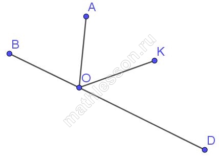 Найдите величину угла $$DOK$$, если $$OK$$ — биссектриса угла $$AOD$$, $$\angle DOB = 64^\circ$$. Ответ дайте в градусах.