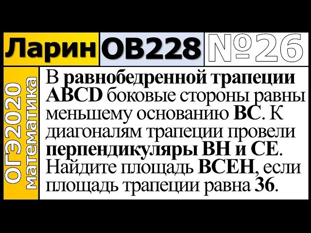 В равнобедренной трапеции $$ABCD$$ боковые стороны равны меньшему основанию $$BC$$. К диагоналям трапеции провели перпендикуляры $$BH$$ и $$CE$$. Найдите площадь четырёхугольника $$BCEH$$, если площадь трапеции равна $$36$$.