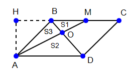 2) Пусть $$S_{BOM}=S_{1}$$; $$S_{AOD}=S_{2}$$; $$S_{ABO}=S_{3}$$ $$\Rightarrow S_{AOD}=4S_{BOM}=4S_{2}$$; $$S_{ABD}=\frac{1}{2}S_{ABCD}=\frac{1}{2}$$; $$S_{ABM}=\frac{1}{2}\cdot AH\cdot BM=\frac{1}{2}\cdot \frac{1}{2}\cdot BC\cdot BM=\frac{1}{4}S_{ABCD}=\frac{1}{4}$$