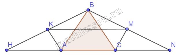 Из $$\Delta HAB$$: AK-высота и биссектриса $$\Rightarrow$$ и медиана и $$AH=AB$$ ($$\Delta AHB$$-равнобедренный)