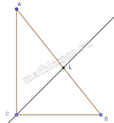 Найдите площадь прямоугольного треугольника, если биссектриса прямого угла делит гипотенузу на отрезки длины $$15$$ и $$20$$ см.