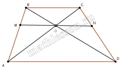 3) т.к. $$\bigtriangleup OCN\sim\bigtriangleup ACD$$ $$\Rightarrow$$ $$\frac{ON}{AD}=\frac{OC}{AC}$$; $$\frac{OC}{AC}=\frac{OC}{OC+3OC}=\frac{1}{4}$$ $$\Rightarrow$$ $$ON=\frac{1}{4}AD=4,5$$ $$\Rightarrow$$ $$MN=9$$