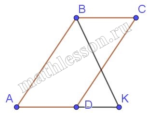 b) вне AD. Аналогично $$AK=AB=12$$. Пусть $$DK=3x$$, тогда AK=4x и AD=x. Получаем $$4x=12\Rightarrow x=3$$ и $$P_{ABCD}=2(12+3)=30$$