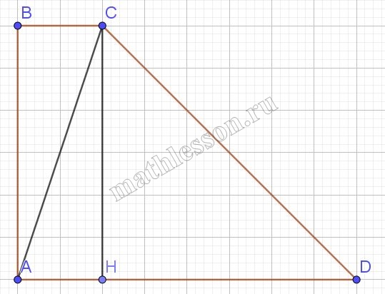 2) из $$\Delta AHC$$: $$AH=\sqrt{AC^{2}-CH^{2}}=12$$; т.е. CH и $$AB\perp AD$$, то BH=AH=12; AD=AH+HD=28