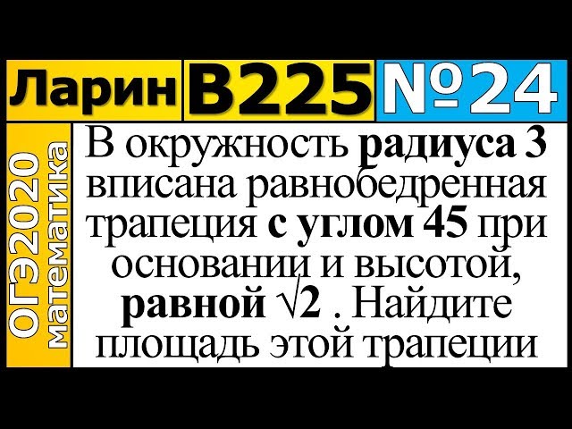 В окружность радиуса $$3$$ вписана равнобедренная трапеция с углом $$45^{\circ}$$ при основании и высотой, равной $$\sqrt{2}$$ . Найдите площадь этой трапеции