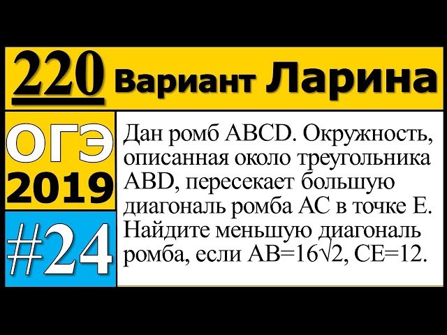 Дан ромб $$ABCD$$. Окружность, описанная около треугольника $$ABD$$, пересекает большую диагональ ромба $$AC$$ в точке $$E$$. Найдите меньшую диагональ ромба, если $$AB=16\sqrt{2}$$, $$CE=12$$.