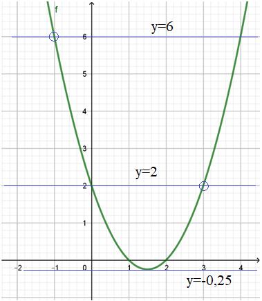 - при $$x \in (3-\sqrt{5}; 3+\sqrt{5})$$: $$y=-x^{2}+6x-6(2)$$