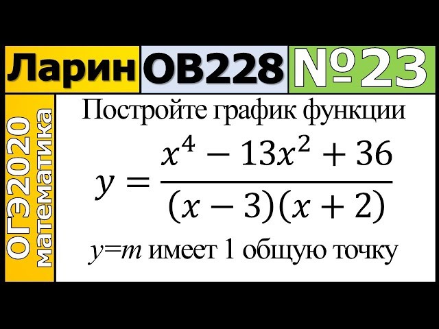 Постройте график функции $$y = \frac{x^4 - 13x^2 + 36}{(x - 3)(x + 2)}$$. Найдите все значения $$m$$, при каждом из которых прямая $$y = m$$ имеет с графиком функции ровно одну общую точку.