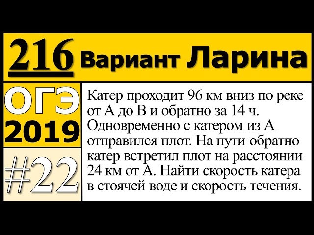 Катер проходит $$96$$ км вниз по реке от $$A$$ до $$B$$ и обратно за $$14$$ ч. Одновременно с катером из $$A$$ отправился плот. На пути обратно катер встретил плот на расстоянии $$24$$ км от $$A$$. Найдите скорость катера в стоячей воде и скорость течения