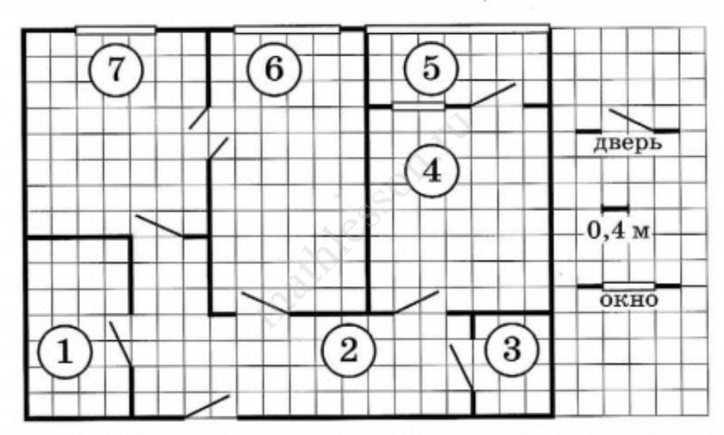 1. Для помещений, указанных в таблице, определите, какими цифрами они обозначены на плане. Заполните таблицу, в бланк перенесите последовательность пяти цифр.