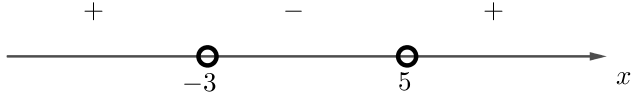 Выражение отрицательное при: $$x \in (-3;\,5).$$
