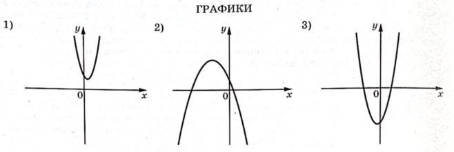 На рисунках изображены графики функций вида $$y = ax^2 + bx + c$$. Установите соответствие между знаками коэффициентов $$a$$ и $$c$$ и графиками функций.