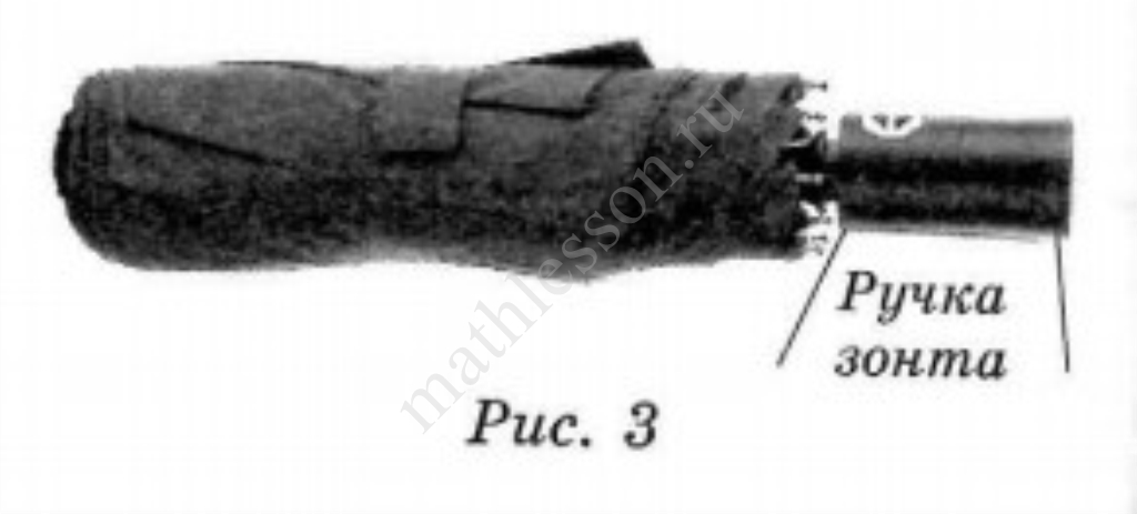 1) Длина зонта в сложенном виде равна $$27$$ см и складывается из длины ручки (рис. 3) и трети длины спицы (зонт в три сложения). Найдите длину спицы, если длина ручки зонта равна $$6,5$$ см.