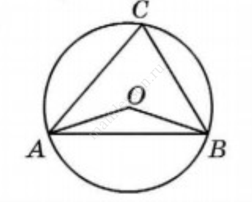 Треугольник $$ABC$$ вписан в окружность с центром в точке $$O$$. Точки $$O$$ и $$C$$ лежат в одной полуплоскости относительно прямой $$AB$$. Найдите угол $$ACB$$, если угол $$AOB$$ равен $$115^\circ$$.