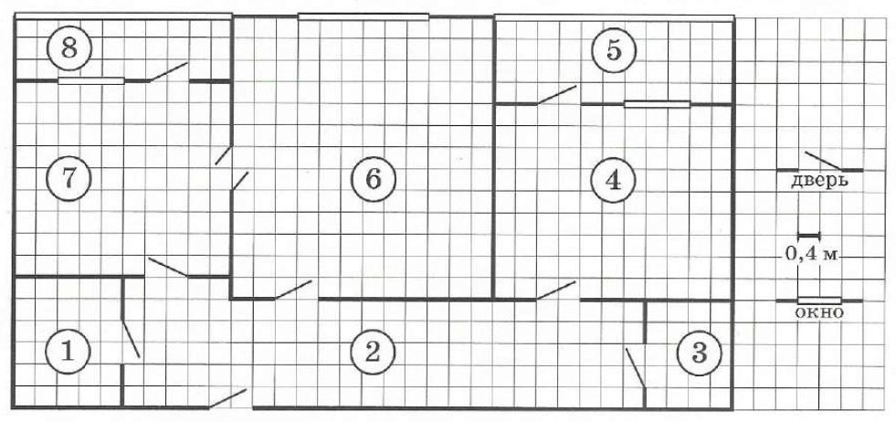 1. Для помещений, указанных в таблице, определите, какими цифрами они обозначены на плане. Заполните таблицу, в бланк перенесите последовательность пяти цифр.