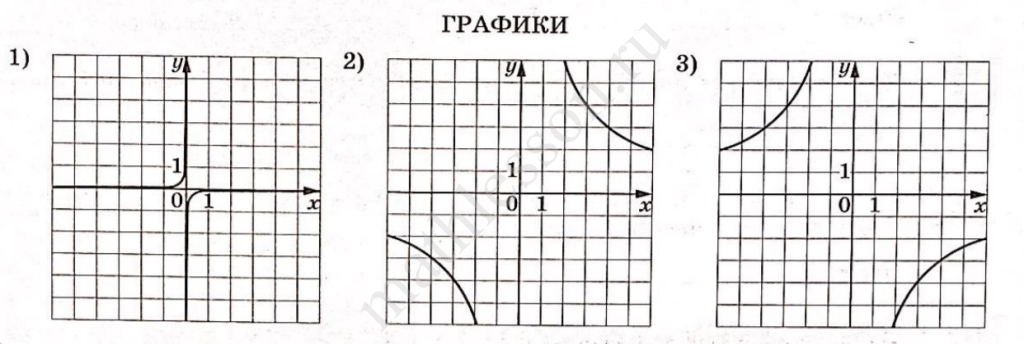 Установите соответствие между формулами, которыми заданы функции, и графиками этих функций.