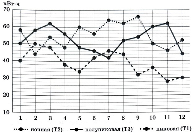 1. Пользуясь рисунком, поставьте в соответствие каждому из указанных периодов времени характеристику расхода электроэнергии.