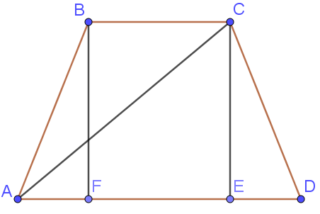 Треугольники $$ABF$$ и $$CED$$ - равны по катету и гипотенузе, тогда $$AF = \frac{AD-BC}{2} = 2,5$$