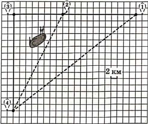 2) С учетом, что $$1$$ клетка по масштабу равна $$2$$ км, то расстояние (по первым буквам названия населенного пункта): ВО: $$24$$ км; ОЗ: $$16$$ км; ЗБ: $$30$$ км.