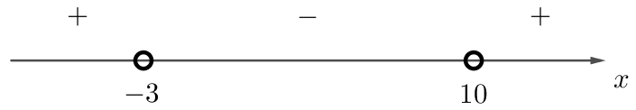 Ответ: $$(-\infty; -3) \cup (10; +\infty)$$