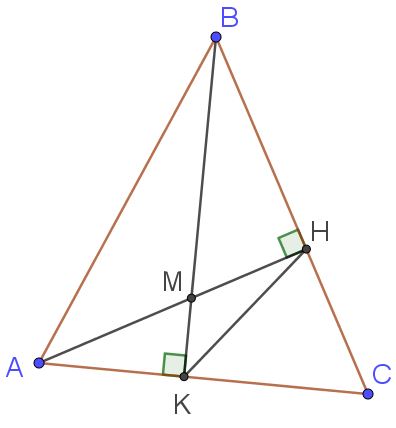 1) Пусть $$AH \cap BK = M$$, тогда углы $$\angle KMA$$ и $$\angle HMB$$ вертикальные: $$\angle KMA = \angle HMB.$$