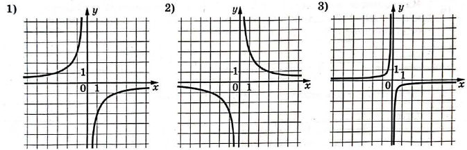 - Функция $$y = \frac{3}{x}$$ (буква $$A$$) имеет ветви в первой и третьей четвертях. То есть это график под номером $$2$$.