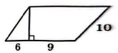 1) По рисунку основание параллелограмма равно $$a = 6 + 9 = 15,$$ а боковая сторона равна $$10.$$ Эта сторона вместе с отрезком основания длиной $$6$$ образует прямоугольный треугольник, поэтому высота параллелограмма — второй катет этого треугольника.