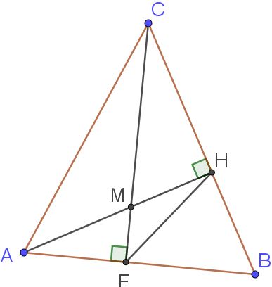 1) Пусть $$AH \cap CF = M$$, тогда углы $$\angle FMA$$ и $$\angle HMC$$ вертикальные: $$\angle FMA = \angle HMC.$$